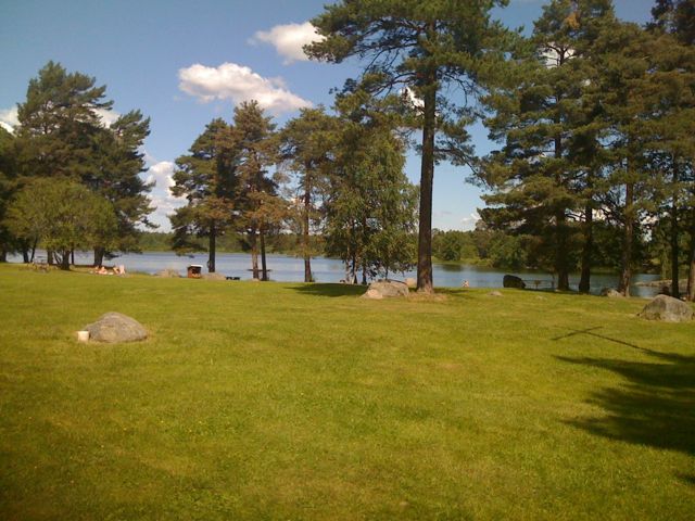 Medsjöskogens legendariskt vackra camping (bild ovan). Har passerat denna urskönt suktande plats i många år. Idag svängde jag av och hamnade i ett trevligt samtal med personalen. Och ibland är det märkligt. Plötsligt kom en vän från min campingtid ute i Kapellskär gående där, Roffe. Tala om sammanträffande. Åk in där. Ta med badkläder.