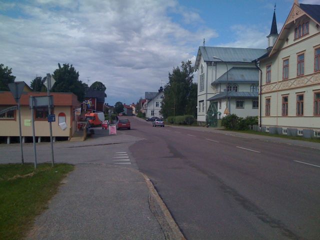 När jag ändå var uppåt i landet så gick turen om än lite försenad via Avesta och Sandviken sedan upp på småvägarna till numera rikskända Ockelbo, där jag gjorde en praktik för fyra år sedan. Kaffepannan sattes på och jag fick som vanligt där fint bemötande av personalen på Svenska Kyrkan. Min avsikt var att träffa min fd handledare, kyrkoherde Stefan Nilsson. Och vi fick några minuters samtal. En god förebild som präst. Dessvärre var inte komminister Sam där. Orten är inte stor. I huvudsak två gator med lite affärer (ovan bild nedan bild av en huvudgatorna).