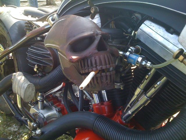 Gillar kreativiteten när det gäller mc byggen. Här behöver man inte vara finklädd – No smoking….
