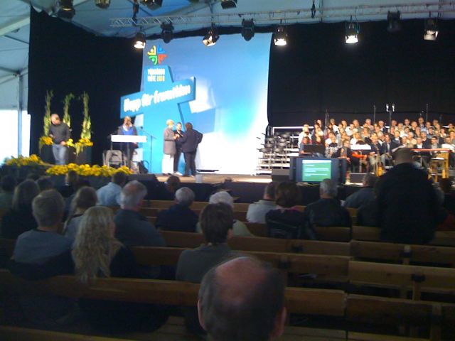 Moderator Pastor Torsten Åhman ledde utfrågningarna alla dagar. Och han ställde efter mitt 40 minuters pass, även frågor till mig. Och han drog in mig i en dans på scen på slutet av kvällen pga väderlekens låga temperatur i tältet som fick in över 2.000 människor. Torsten är en varm människa.