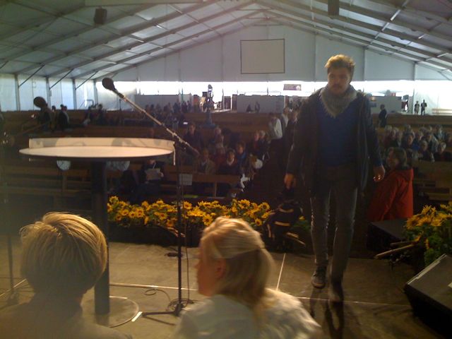 Moderator Pastor Torsten Åhman ledde utfrågningarna alla dagar. Och han ställde efter mitt 40 minuters pass, även frågor till mig. Och han drog in mig i en dans på scen på slutet av kvällen pga väderlekens låga temperatur i tältet som fick in över 2.000 människor. Torsten är en varm människa.